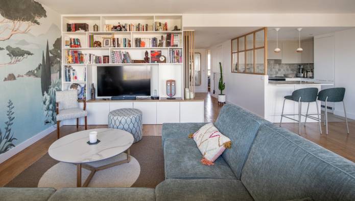 Pour maximiser la fonctionnalité du salon, des meubles multifonctionnels ont été intégrés. Des canapés-lits offrent des options de couchage supplémentaires pour les invités, tandis que des tables basses avec rangements intégrés permettent de garder l'espace ordonné. Chaque détail a été pensé pour créer un salon à la fois beau et pratique, où il fait bon se détendre et partager des moments avec ses proches. La transformation des salons dans les appartements de Paris 16e et Paris 8e démontre l'expertise de La Maison Des Travaux en matière de rénovation et de design d'intérieur.
